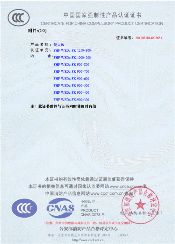 產(chǎn)品全通過(guò)國(guó)家消防檢測(cè)中心檢測(cè),獲得CCC證書